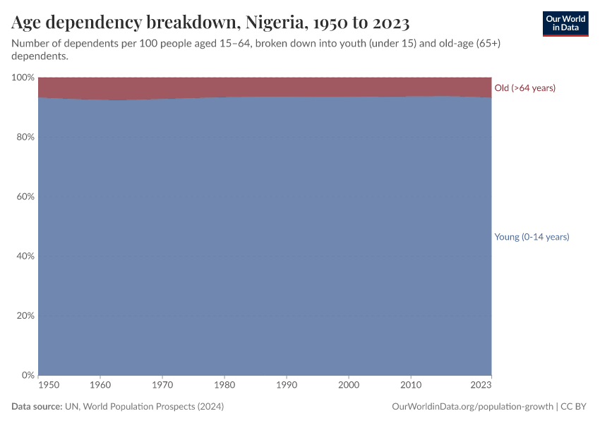 The opposite is true in Nigeria, where almost 94% of dependents there were young in 2021.