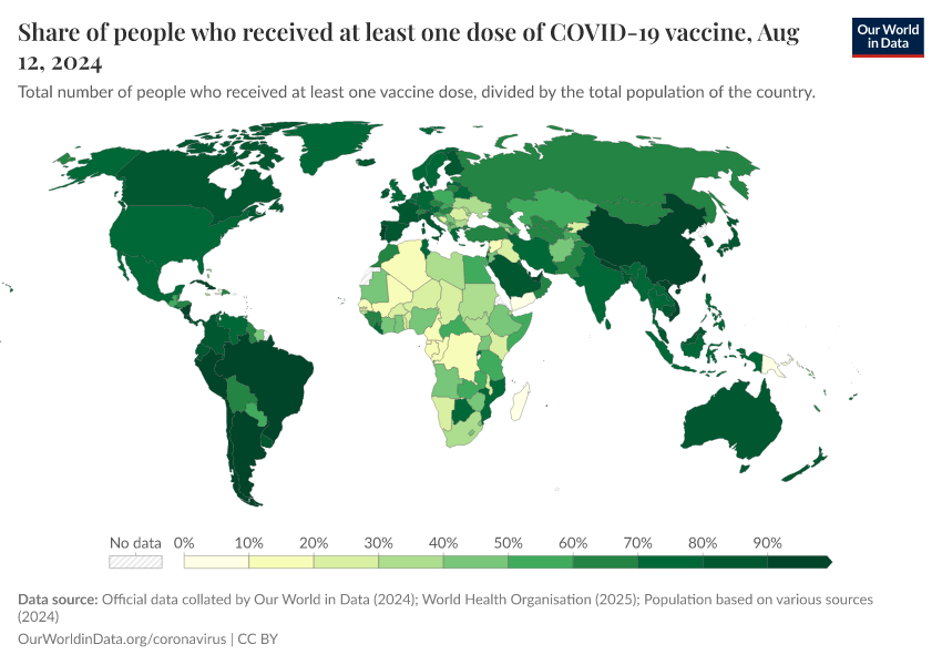Edouard Mathieu, Hannah Ritchie, Lucas Rodés-Guirao, Cameron Appel, Daniel Gavrilov, Charlie Giattino, Joe Hasell, Bobbie Macdonald, Saloni Dattani, Diana Beltekian, Esteban Ortiz-Ospina, and Max Roser (2020) - “Coronavirus (COVID-19) Vaccinations” Published online at OurWorldinData.org. Retrieved from: 'https://who-mortality-db.owid.pages.dev:8789/20260312-063324/covid-vaccinations.html' [Online Resource] (archived on March 12, 2026).BibTeX citation