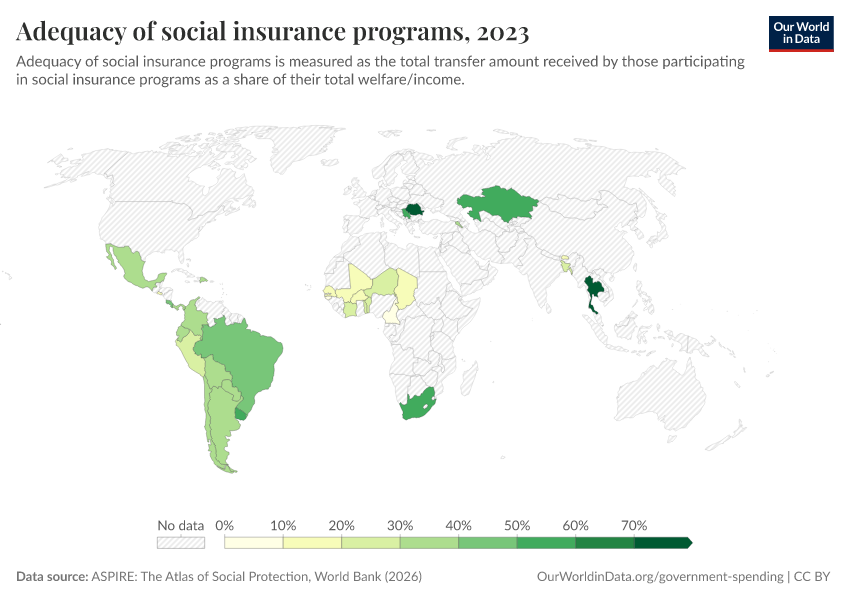 “Data Page: Adequacy of social insurance programs”. Our World in Data (2026). Data adapted from ASPIRE: The Atlas of Social Protection, World Bank. Retrieved from https://who-mortality-db.owid.pages.dev:8789/20260304-094028/grapher/adequacy-of-social-insurance-programs.html [online resource] (archived on March 4, 2026).How to cite this data
