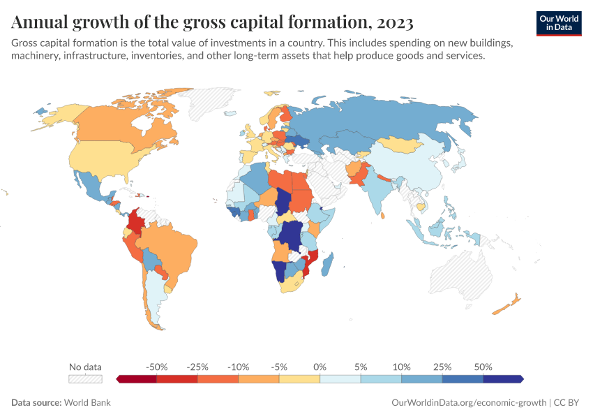 “Data Page: Annual growth of the gross capital formation”. Our World in Data (2026). Data adapted from World Bank. Retrieved from https://who-mortality-db.owid.pages.dev:8789/20260304-094028/grapher/annual-growth-of-the-gross-capital-formation.html [online resource] (archived on March 4, 2026).How to cite this data