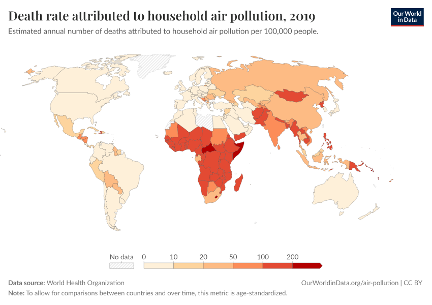 World Health Organization – processed by Our World in Data. “Death rate attributed to household air pollution” [dataset]. World Health Organization, “Global Health Observatory (GHO), World Health Organisation (WHO)” [original data]. Retrieved March 12, 2026 from https://who-mortality-db.owid.pages.dev:8789/20260304-094028/grapher/death-rate-household-air-pollution.html (archived on March 4, 2026).