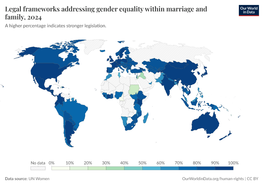 “Data Page: Legal frameworks addressing gender equality within marriage and family”. Our World in Data (2026). Data adapted from UN Women. Retrieved from https://who-mortality-db.owid.pages.dev:8789/20260304-094028/grapher/legal-frameworks-gender-equality-within-marriage-and-family.html [online resource] (archived on March 4, 2026).How to cite this data