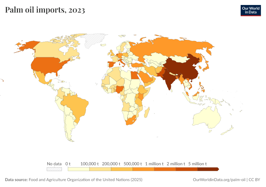“Data Page: Imports of palm oil”. Our World in Data (2026). Data adapted from Food and Agriculture Organization of the United Nations. Retrieved from https://who-mortality-db.owid.pages.dev:8789/20260304-094028/grapher/palm-oil-imports.html [online resource] (archived on March 4, 2026).How to cite this data