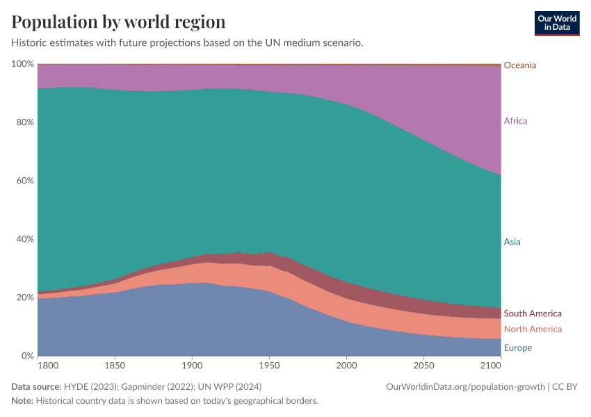 2024-2100: Projections based on Medium variant by the UN World Population Prospects (2024 revision).