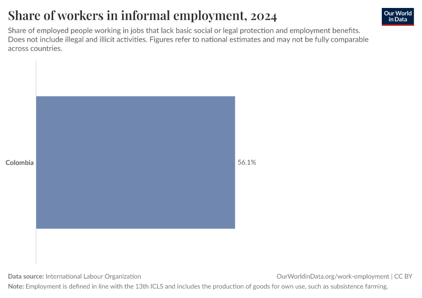 “Data Page: Share of workers in informal employment”. Our World in Data (2026). Data adapted from International Labour Organization. Retrieved from https://who-mortality-db.owid.pages.dev:8789/20260304-094028/grapher/share-in-informal-employment.html [online resource] (archived on March 4, 2026).How to cite this data