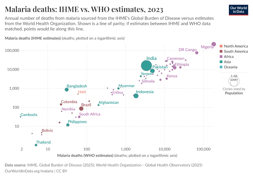 Max Roser and Hannah Ritchie (2015) - “Malaria” Published online at OurWorldinData.org. Retrieved from: 'https://who-mortality-db.owid.pages.dev/malaria' [Online Resource]BibTeX citation