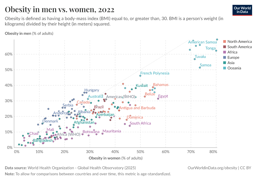 Hannah Ritchie and Max Roser (2017) - “Obesity” Published online at OurWorldinData.org. Retrieved from: 'https://who-mortality-db.owid.pages.dev/obesity' [Online Resource]BibTeX citation