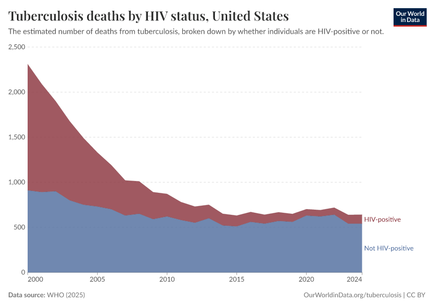 But as you can also see in the chart, even more aggressive controls on TB and HIV meant that this share has fallen a lot over the last decades.